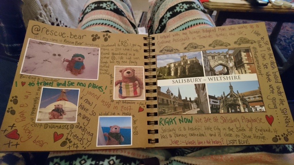 What happened next was truly magical and I’m not going to lie, a little bit emotional. Rescue had a private message from a special little bear who looked just like him… a Charmin bear, it turned out he wasn’t the only one either, there were lots and lots all over the world, a whole long lost family of bears who all looked a little bit like our Rescue. Well, you just couldn’t make this stuff up if you tried! As if all this wasn’t enough whilst carrying out his duties as a theatre mascot at Salisbury Playhouse RB chanced upon his first actual family member ‘in the fur’. Lodging at a charity shop was the small but perfectly formed Nephew Bear (NB for short) RB was an uncle, who knew?!